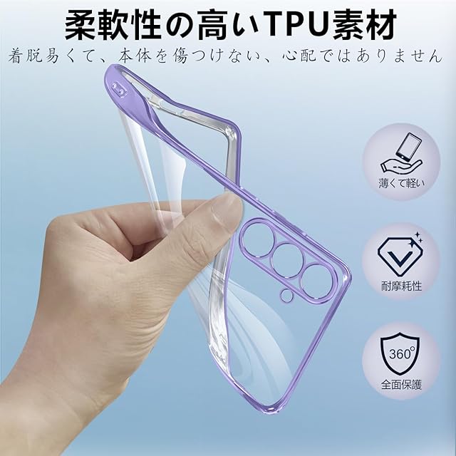 商品名:【FULEEYUHN】Samsung Galaxy S25 ケース クリア ギャラクシー S25 カバー 透明 TPU素材 耐衝撃 薄型 軽量 SC-51F SCG31 対応 韓国 ファッション スマホケース メッキ加工 黄変防止 人気 ストラップホール付き ワイヤレス充電対応(パープル)