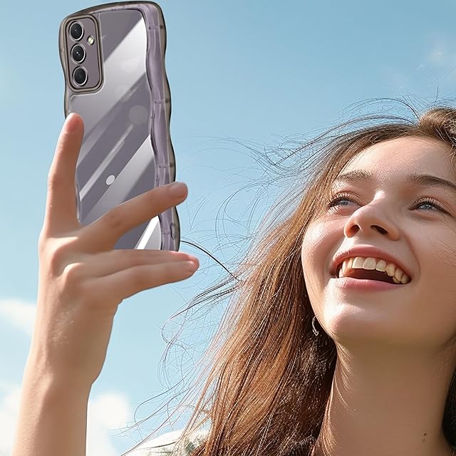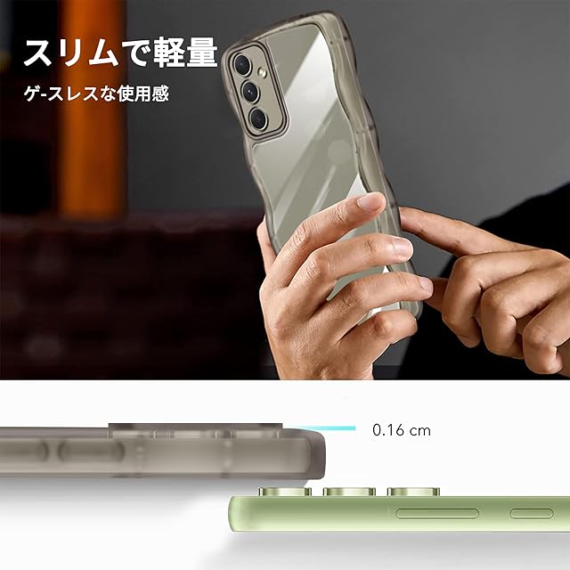 Samsung Galaxy A54 5G ケース クリア 波状フレーム グーグル ギャラクシー A54 カバー うねうね 耐衝撃 女性用 女子向け 人気 スマホケース 薄型 軽量 透明 TPU ワイヤレス充電対応 ストラップホール付 (ブラック)