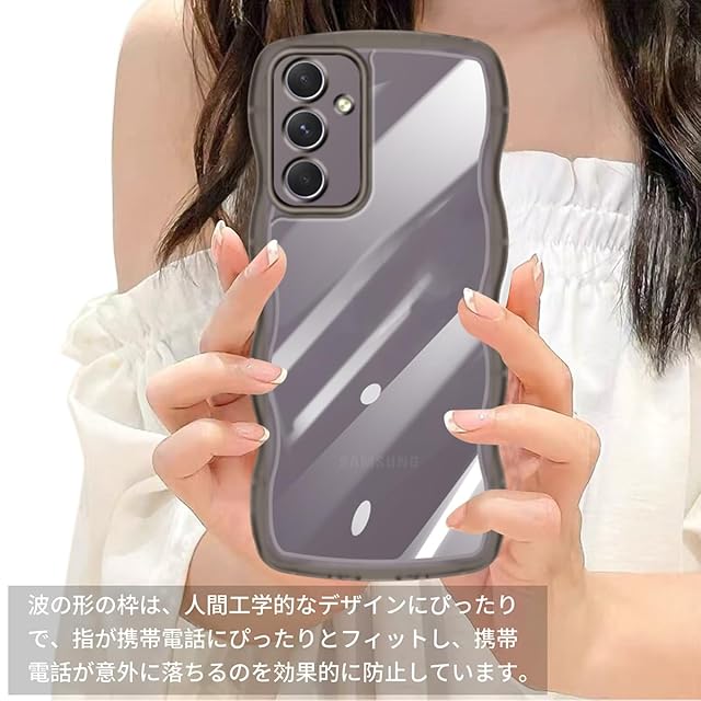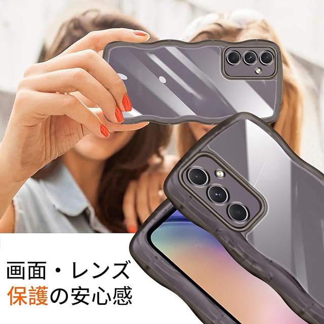 商品名:Samsung Galaxy A54 5G ケース クリア 波状フレーム グーグル ギャラクシー A54 カバー うねうね 耐衝撃 女性用 女子向け 人気 スマホケース 薄型 軽量 透明 TPU ワイヤレス充電対応 ストラップホール付 (ブラック)