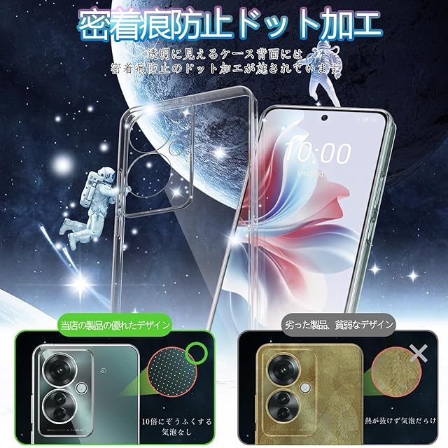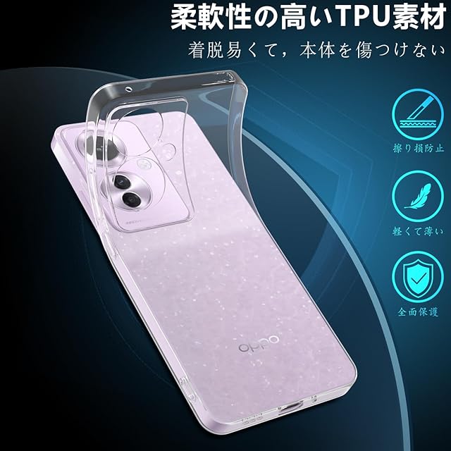 【対応機種】OPPO Reno11 A ケース 薄くて頑丈で、程よいグリップ感があり、できるだけスマートフォン本体のスリムさを極力損なわないように設計した透明背面ケースです。位置、及び全てのスピーカー、ポート、ボタンを精密に設計しており、充電、及びヘッドフォンで音楽を聴いても機能的な使用を妨げなく。柔軟性があるため、ケースの装着が簡単です。