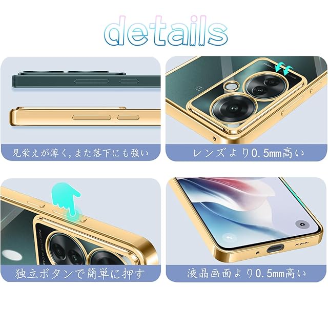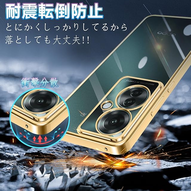 商品名:OPPO Reno11 A ケース クリア スマホケース オッポ レノ11A カバー 耐衝撃 薄型 ソフト 米軍MIL規格 全透明 TPU 衝撃吸収 (ゴールド)