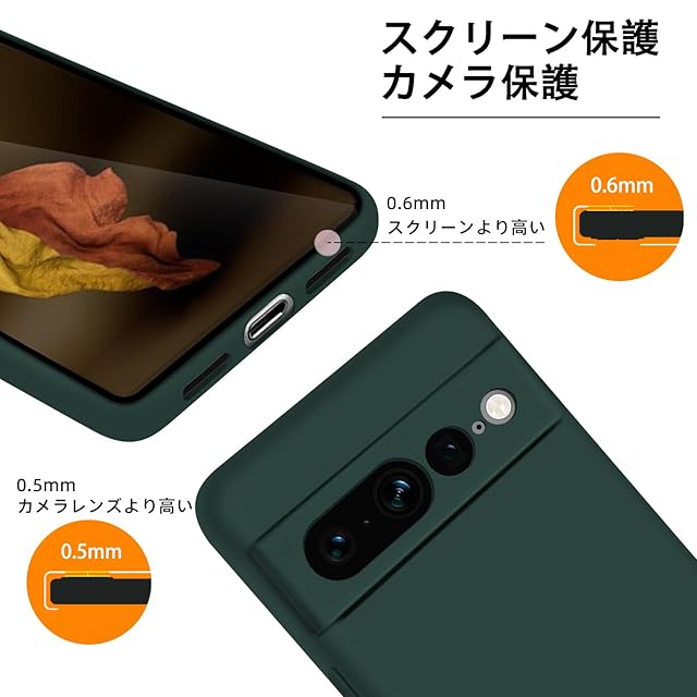 商品名:inxhey Google Pixel7Pro ケース シリコン 耐衝撃 カバー グーグル ピクセル 7pro ケース ストラップホール付き シリコーン スマホケース マット質感 持ちやすい 衝撃吸収 すり傷防止 柔軟 軽量 薄型 携帯ケース (グリーン)