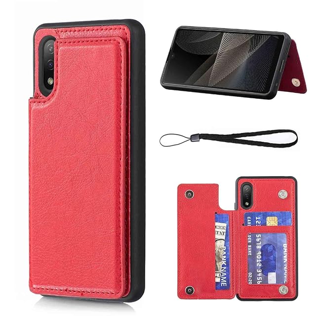 【Aqier】For Xperia Ace II/docomo SO-41B ケース 背面手帳型 軽い薄い 純色 レザーケース(レッド)ソニー エクスペリア エースⅡ ドコモso41b ケースカード入れ 片手操作 バックカバー ソニーxperia ace2 赤色