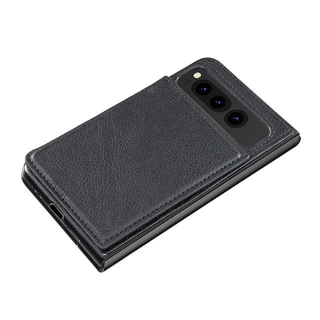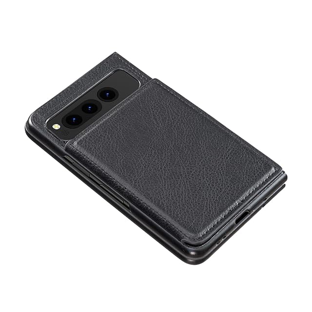 【Aqier】For Pixel Fold docomo 用 ケース 背面手帳型 軽い薄い 純色 レザーケース (ブラック) グーグル ピクセル フォールド ケースカード入れ 片手操作 バックカバー fold 黒