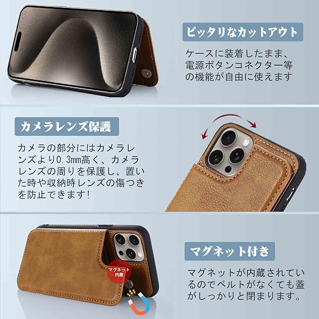 【上質素材】:耐久性のあるTPUと柔軟性のある上質レザーを採用されて、傷やカジリを防ぐことが出来ます。また、指紋、油分などもつきにくく、カメラレンズ保護構造でスマホ本体を傷から360度しっかり保護してくれます。