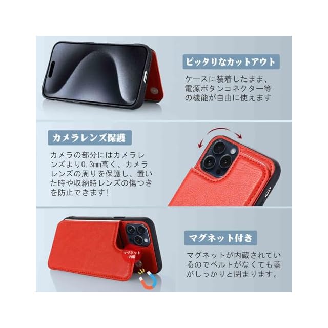 【上質素材】:耐久性のあるTPUと柔軟性のある上質レザーを採用されて、傷やカジリを防ぐことが出来ます。また、指紋、油分などもつきにくく、カメラレンズ保護構造でスマホ本体を傷から360度しっかり保護してくれます。