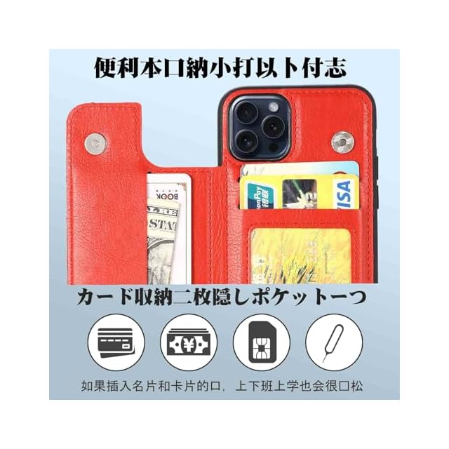 商品名:【Aqier】For iPhone 15 6.1 inch ケース 背面手帳型 軽い薄い 純色 レザーケース(レッド)アイフォン15 6.1インチ ケースカード入れ 片手操作 バックカバー アップル アイフォン15 赤色