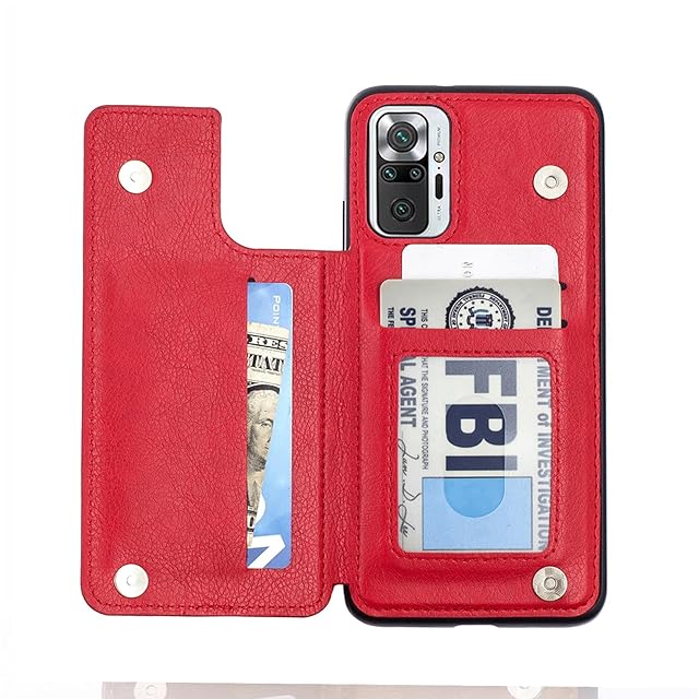 【Aqier】For Redmi Note 10 Pro/Note 10 Pro Max ケース 背面手帳型 軽い薄い 純色 レザーケース(レッド)シャオミ ミー 10プロ マックス ケースカード入れ 片手操作 バックカバー シャオミnote10pro 赤色
