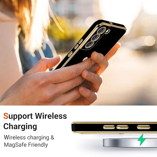 Teageo 適用 Samsung Galaxy S22 ケース対応 少女の 可愛い 愛心の形 メッキ加工保護ケース 薄型 TPU ワイヤレス充電対応 傷に強い 耐衝撃 落下防止 電話カバー Samsung Galaxy S22 用 スマホケース(ブラック)