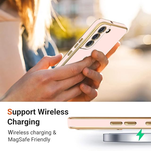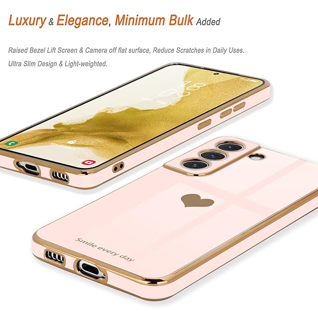 商品名:Teageo 適用 Samsung Galaxy S22 ケース対応 少女の 可愛い 愛心の形 メッキ加工保護ケース 薄型 TPU ワイヤレス充電対応 傷に強い 耐衝撃 落下防止 電話カバー Samsung Galaxy S22用 スマホケース(ライトピンク)