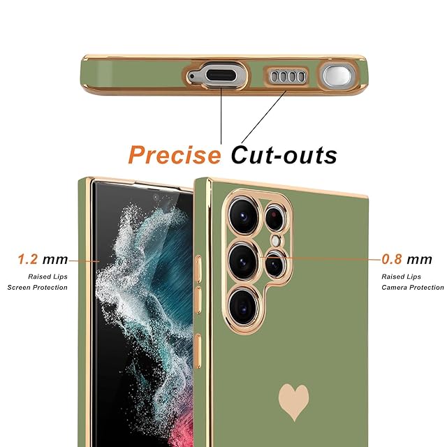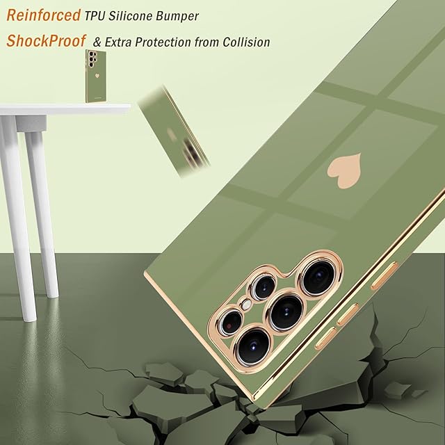Teageo 適用 Samsung Galaxy S22 Ultra ケース対応 少女の 可愛い 愛心の形 メッキ加工保護ケース 薄型 TPU ワイヤレス充電対応 傷に強い 耐衝撃 落下防止 電話カバー Samsung Galaxy S22 Ultra 用 スマホケース(ライトグリーン)