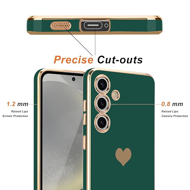 Teageo 適用 Samsung Galaxy S24 Plus ケース対応 少女の 可愛い 愛心の形 メッキ加工保護ケース 薄型 TPU ワイヤレス充電対応 傷に強い 耐衝撃 落下防止 電話カバー Samsung Galaxy S24 Plus用 スマホケース(ダークグリーン)