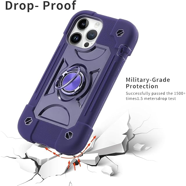 商品名:PboyiqiS For iPhone 16 ケース 耐衝撃 頑丈 360度回転スタンド リング付き付き 虹色 かわいい アイフォン16 マックス ケース 車載ホルダー対応 落下防止 ストラップホール付き アウトドア 子供 仕事用 (紫, iPhone 16)