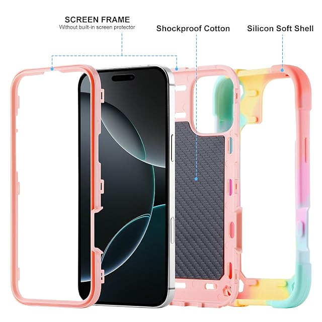商品名:PboyiqiS For iPhone 16 Pro Max ケース 耐衝撃 頑丈 360度回転スタンド リング付き付き 虹色 かわいい アイフォン16 プロ マックス ケース 車載ホルダー対応 落下防止 ストラップホール付き アウトドア 子供 仕事用 (虹色ピンク, iPhone 16 Pro Max)