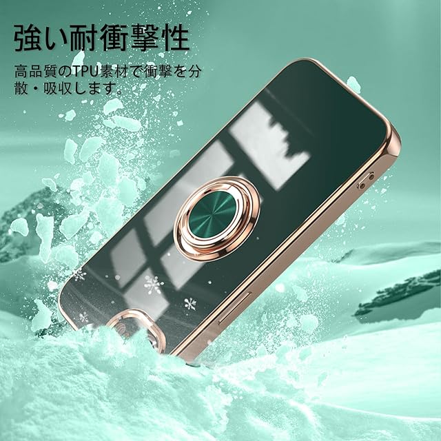 商品名:[ZoRoll] iPhone 16e 対応 ケース リング付き、カバー スマホケース アイフォン 16e TPU シリコン メッキ加工カバー 磁気吸着 軽量 薄型 人気 耐衝撃 タンド機能付き 360回転 車載ホルダー対応 あいふぉん16E 用 カバー (ダークグリーン)