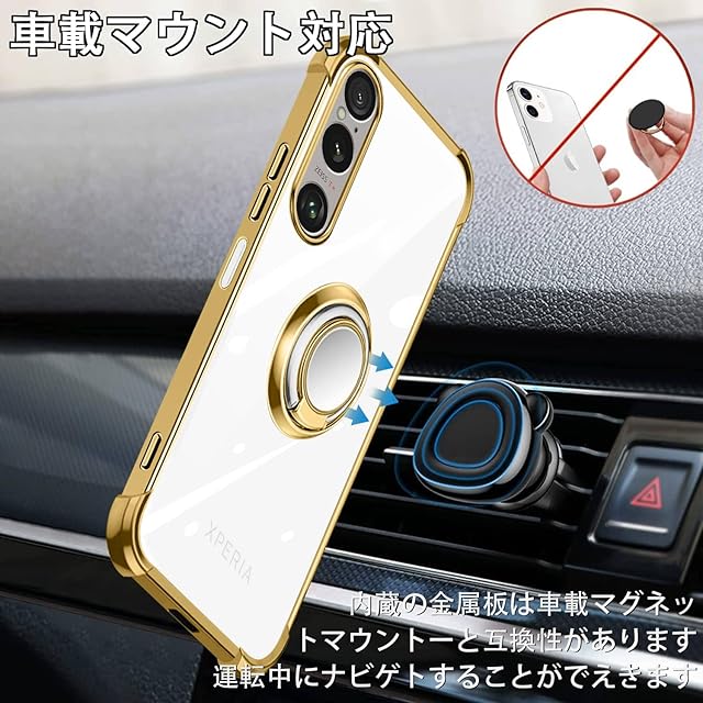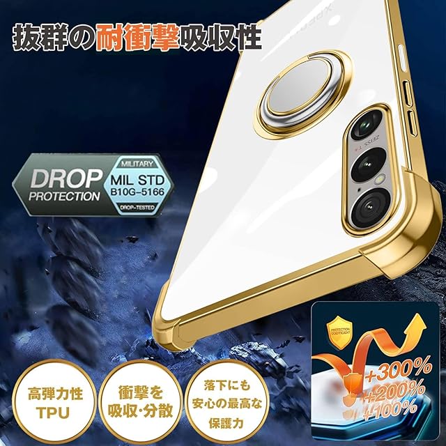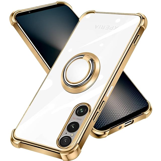 商品名:nahailun Sony Xperia 1 VII ケース クリア xperia 1 vii ケース リング付き 耐衝撃 エクスペリア1VII スマホケース 柔軟 軽量TPU 透明 薄型 レンズ保護スマホ 落下防止 Xperia 1 vii カバー 滑り止め、すり傷防止 360°回転 スタンド機能 車載ホルダー対応 (ゴールド)
