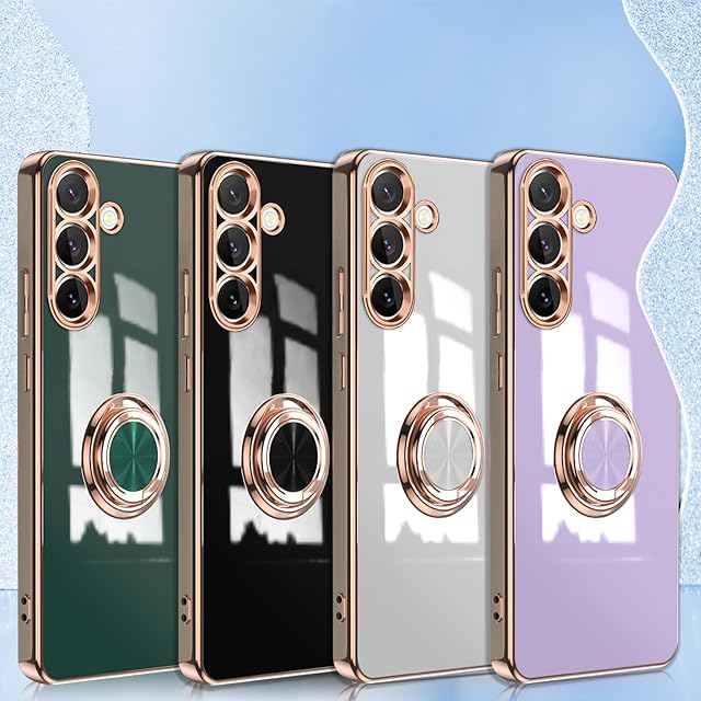 商品名:[ZoRoll] Samsung Galaxy S25 Plus 対応 ケース リング付き、カバー スマホケース Galaxy S25+ TPU シリコン メッキ加工カバー、磁気吸着 軽量 薄型 人気 耐衝撃 タンド機能付き 360回転 車載ホルダー対応 サムスン ギャラクシーS25+ 用 カバー (ブラック)