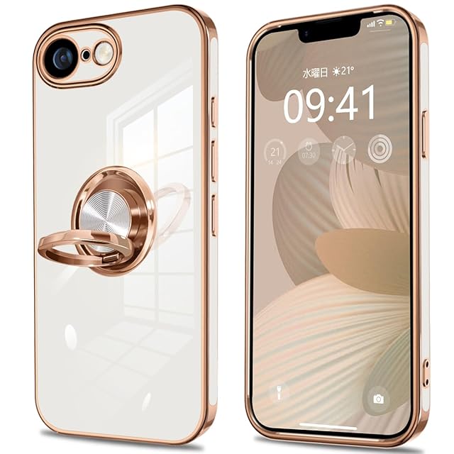 商品名:iPhone 16e ケース リング付き 耐衝撃 いphone 16e リング スマホケース TPU 軽量 人気 アイフォン16e カバー ストラップホール付き スタンド機能付き 360回転車載ホルダー(クリーミーホワイト)