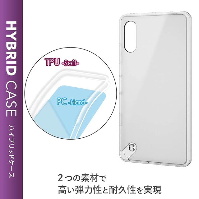 側面に弾力性のあるTPU素材を、背面に強じんで透明度の高いポリカーボネート素材を使用した、スリムなスタイルのXperia Ace II用ハイブリッドケースです。