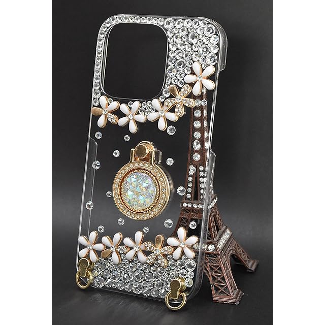 商品名:楽々ショップ ケース phone 15 pro 6.1インチ用 スマホカバー スマホケース デコレーションケース ラインストーンカバー 可愛い ダイヤカバー 指スタンド ショルダーストラップ付 CGS-TZ-C-i15pro
