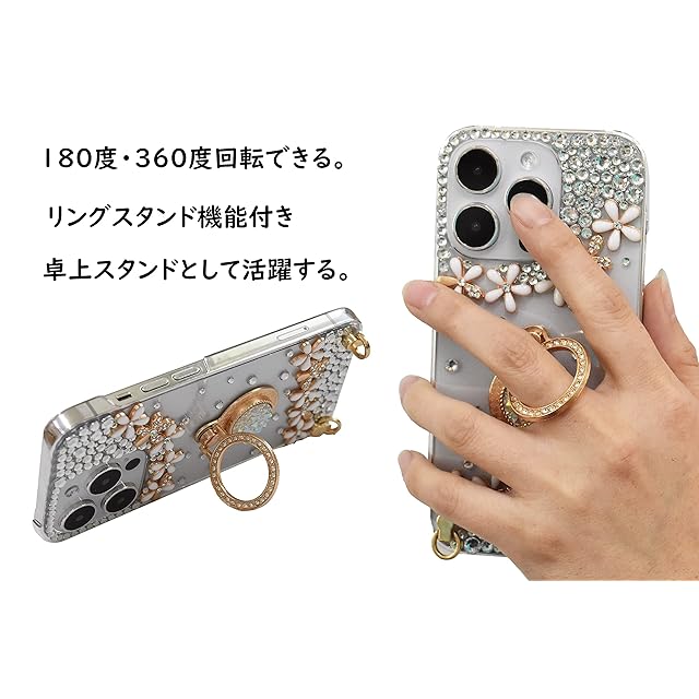 商品名:楽々ショップ ケース phone 16e用 スマホカバー スマホケース デコレーションケース ラインストーンカバー 可愛い ダイヤカバー 指スタンド ショルダーストラップ付 CGS-TZ-C-i16e