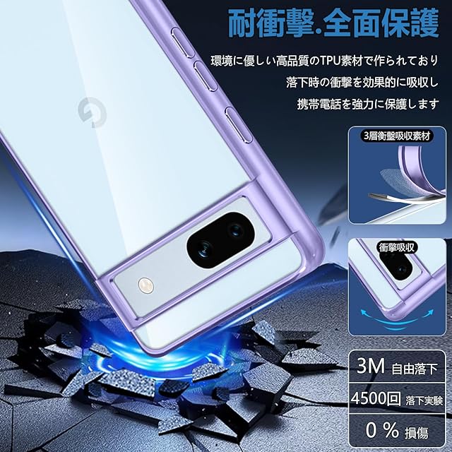 【Fuleeyuhn】Google Pixel 7a ケース クリア 耐衝撃 黄変防止 耐久性 ピクセル 7a カバー 透明 TPU素材 薄型 軽量 落下防止 擦り傷防止 スマホケース ストラップホール付き ワイヤレス充電対応 グーグル ピクセル 7a 携帯ケース 6.1インチ(パープル)