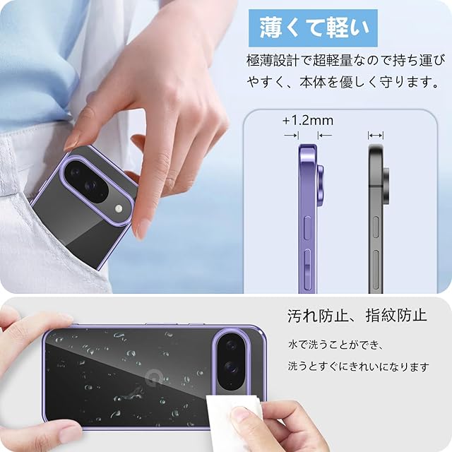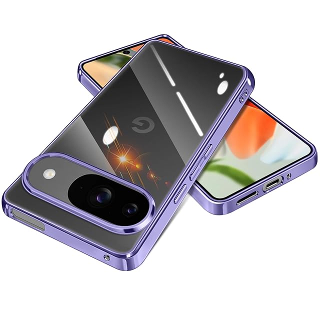 【Fuleeyuhn】Google Pixel 9 / 9pro ケース クリア 耐衝撃 黄変防止 耐久性 ピクセル 9 / 9pro カバー 透明 TPU素材 薄型 軽量 落下防止 擦り傷防止 スマホケース ストラップホール付き ワイヤレス充電対応 6.3インチ(パープル)