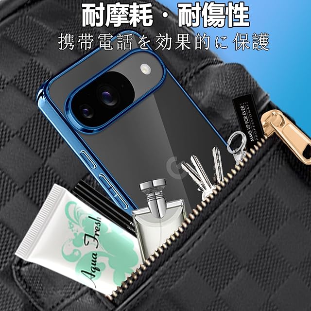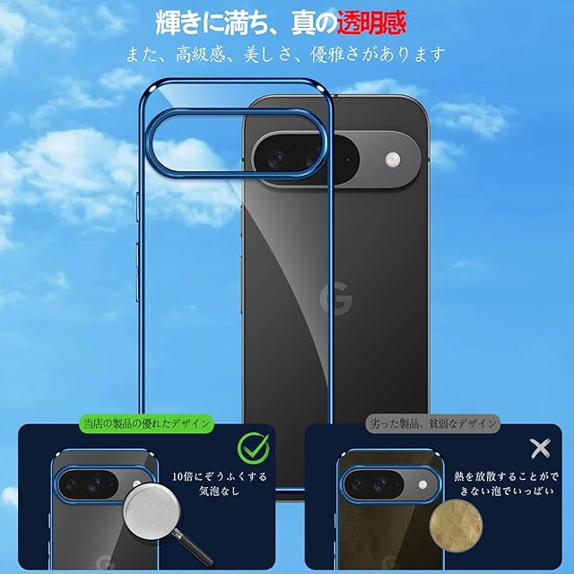 【Fuleeyuhn】Google Pixel 9 / 9pro ケース クリア 耐衝撃 黄変防止 耐久性 ピクセル 9 / 9pro カバー 透明 TPU素材 薄型 軽量 落下防止 擦り傷防止 スマホケース ストラップホール付き ワイヤレス充電対応 6.3インチ(ブルー)