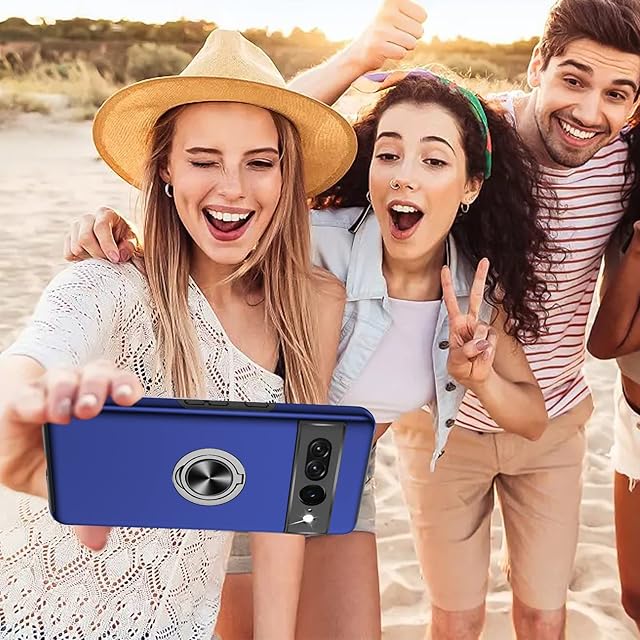 Google Pixel 7A ケース リング付き 耐衝撃 tpu pc 二重構造 全面保護 一体型スマホケース グーグル ピクセル 7a ケース 衝撃吸収 シリコン 360°回転 スタンド機能 軽量 薄型 車載ホルダー対応 米軍MIL規格 指紋防止 人気 携帯カバー 青 ZW75-79