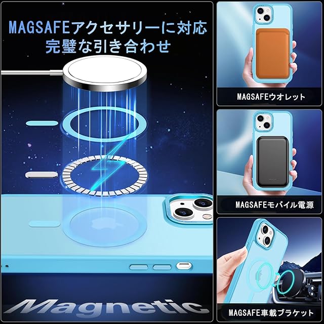AVETUL iPhone 13/14 ケース MagSafe対応 ワイヤレス充電対応 マット仕上げ マグネット搭載 超強磁力 滑り止め 米軍MIL規格耐衝撃 iPhone13/14ケース ストラップホール アイフォン13/14 半透明ハード カバー (ライトブルー)