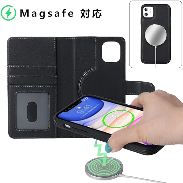 商品名:Havaya iPhone11ケース Magsafe 対応 iPhone11 ケース 手帳型 マグセーフ 耐衝撃 【分離式2in1】 カード収納 ワイヤレス充電対応 フェイクレザー(6.1インチ対応) -ブラック