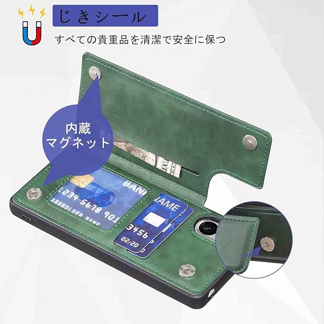 【Aqier】カバー 用 Xperia 5 V 2023 / docomo SO-53D / au SOG12 ケースカード (ダルグリーン) ソニー エクスペリア5v ドコモso53d エクスペリア5 5 スマホケース 背面カード 収納 軽量 多機能 ケース 手帳型 xperia5v GREEN