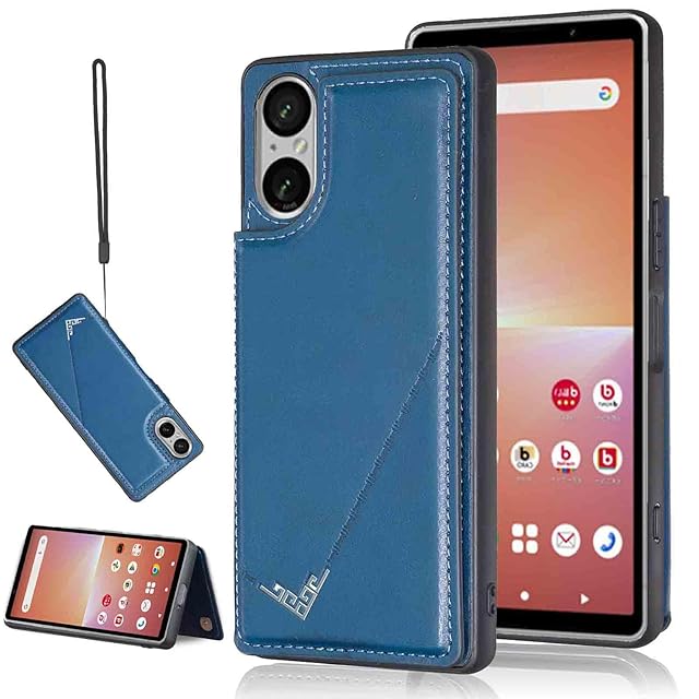【Aqier】カバー 用 Xperia 5 V 2023 / docomo SO-53D / au SOG12 ケースカード (ネイビーブルー) ソニー エクスペリア5v ドコモso53d エクスペリア5 5 スマホケース 背面カード 収納 軽量 多機能 ケース 手帳型 xperia5v BLUE