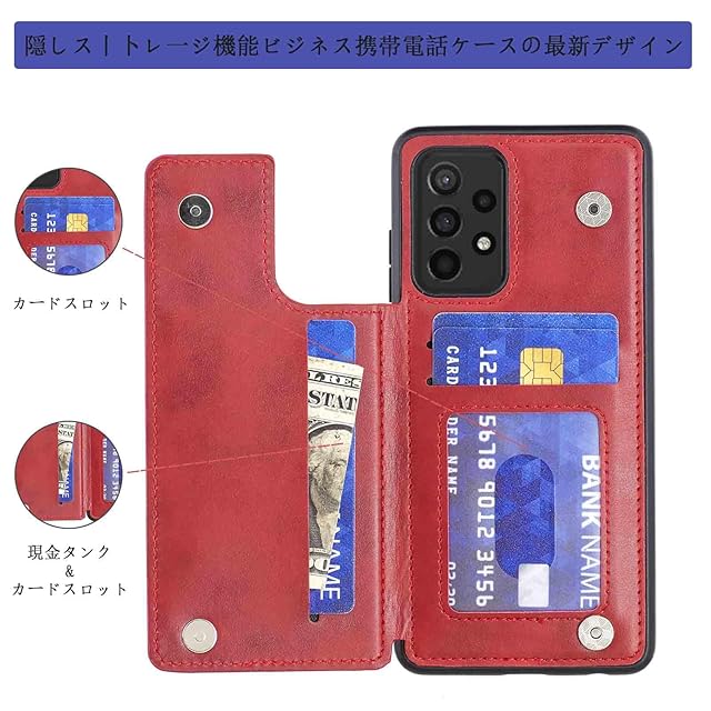 商品名:【Aqier】カバー 用 Galaxy A53 5G / docomo SC-53C / au SCG15 ケースカード (レッド) サムスン ギャラクシーa53 5g ドコモsc53c au scg15 スマホケース 背面カード 収納 軽量 多機能 ケース 手帳型 galaxy a535g RED