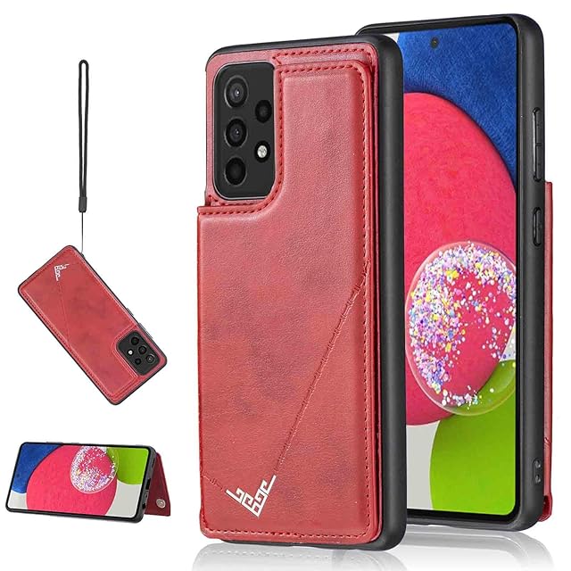 【Aqier】カバー 用 Galaxy A53 5G / docomo SC-53C / au SCG15 ケースカード (レッド) サムスン ギャラクシーa53 5g ドコモsc53c au scg15 スマホケース 背面カード 収納 軽量 多機能 ケース 手帳型 galaxy a535g RED