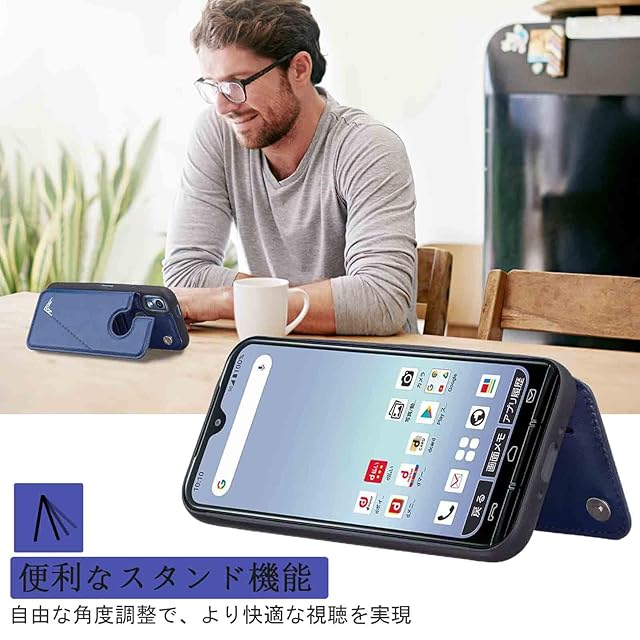 【Aqier】カバー 用 docomo あんしんスマホ KY-51B ケースカード (ネイビーブルー) あんしんスマホ ドコモky51b スマホケース 背面カード 収納 軽量 多機能 ケース 手帳型 京セラky51b BLUE