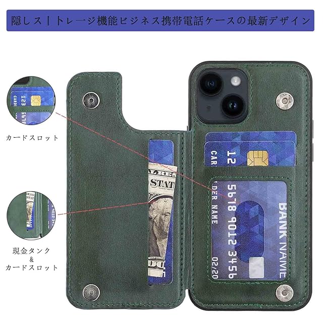 商品名:【Aqier】カバー 用 iPhone 13 6.1 inch ケースカード (ダルグリーン) アップル アイフォン13 6.1インチ スマホケース 背面カード 収納 軽量 多機能 ケース 手帳型 iphone13 GREEN