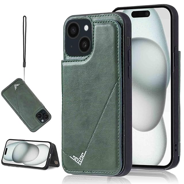 【Aqier】カバー 用 iPhone 13 6.1 inch ケースカード (ダルグリーン) アップル アイフォン13 6.1インチ スマホケース 背面カード 収納 軽量 多機能 ケース 手帳型 iphone13 GREEN