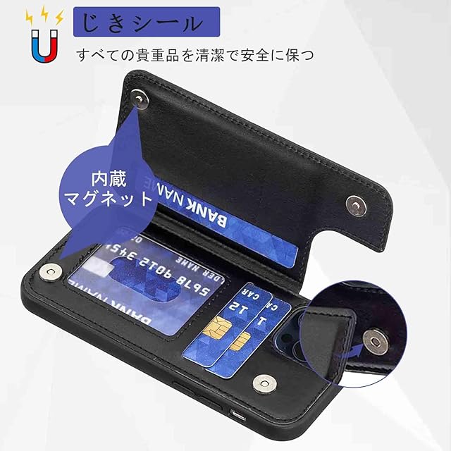 商品名:【Aqier】カバー 用 iPhone 15 6.1 inch ケースカード (ブラック)アイフォン15 6.1インチ スマホケース 背面カード 収納 軽量 多機能 ケース 手帳型 IPHONE15 BLACK