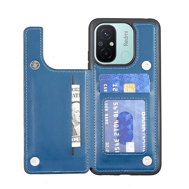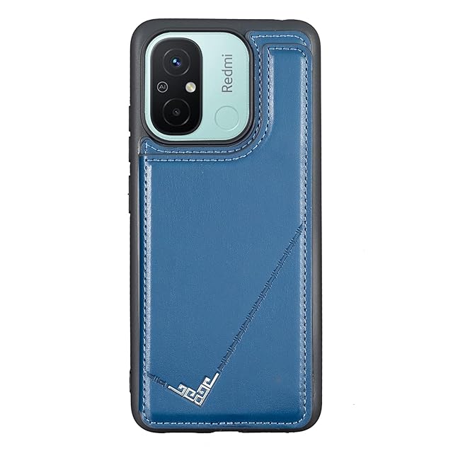 【Aqier】カバー 用 Redmi 12C mineo ケースカード (ネイビーブルー) ミー12c mi12c スマホケース 背面カード 収納 軽量 多機能 ケース 手帳型 mi12c BLUE