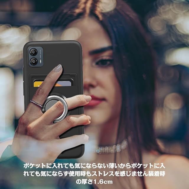 商品名:Sitikai モトローラ MOTO G53j 5G ケース MOTO G53y 5G ケース MOTO G53 5G ケース リング付き シリコン カード収納 モト G53j/G53y/G53 5G ケース スタンド機能 360 Degree回転リング 耐衝撃 耐久 滑り止め 黑