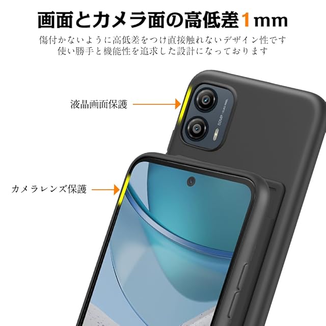 【カメラレンズ保護】 MOTO G53j 5G 本体の薄さを維持しつつ、ケースカメラ部分にはカメラレンズより1mm高く、カメラレンズの周りを保護し、レンズの傷つきを防止できます。