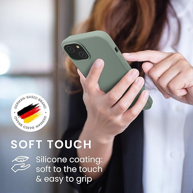 kwmobile スマホケース Apple iPhone 14対応 ケース - 耐衝撃 傷防止 サラサラ - シリコン TPU 雨洗い緑