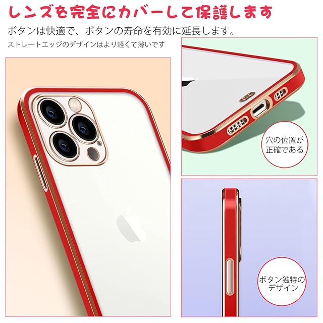 商品名:iPhone 13 Pro Max ケース クリア アイフォン13promax ケース 透明 耐衝撃 TPU 薄型 軽量 カバー 落下防止 一体型 人気 全面保護アイフォンケース 型 ケース(ラッキーレッド)