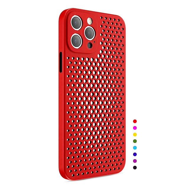 商品名:【Pinscher(ピンシャー)】 iPhone12ProMax用 (レッド) 6.7インチ メッシュ ケース 放熱 アイフォン12プロマックス用 ケース スマホケース カバー バンパー TPU Qi充電 耐衝撃 擦り傷防止 滑り止め 軽量 薄型 pc002-12pm-r