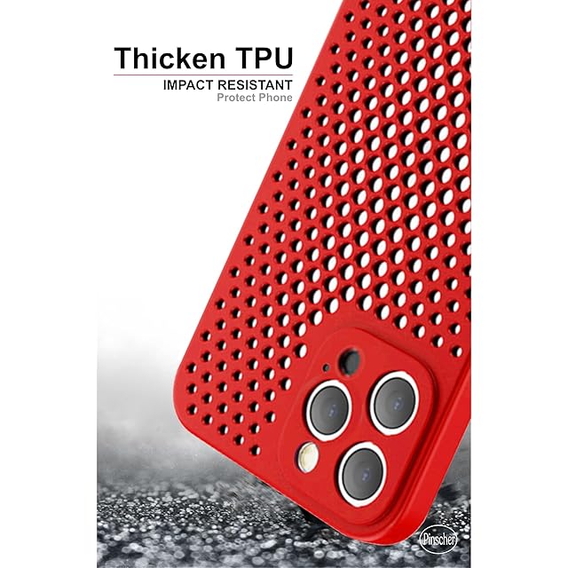 【Pinscher(ピンシャー)】 iPhone12ProMax用 (レッド) 6.7インチ メッシュ ケース 放熱 アイフォン12プロマックス用 ケース スマホケース カバー バンパー TPU Qi充電 耐衝撃 擦り傷防止 滑り止め 軽量 薄型 pc002-12pm-r