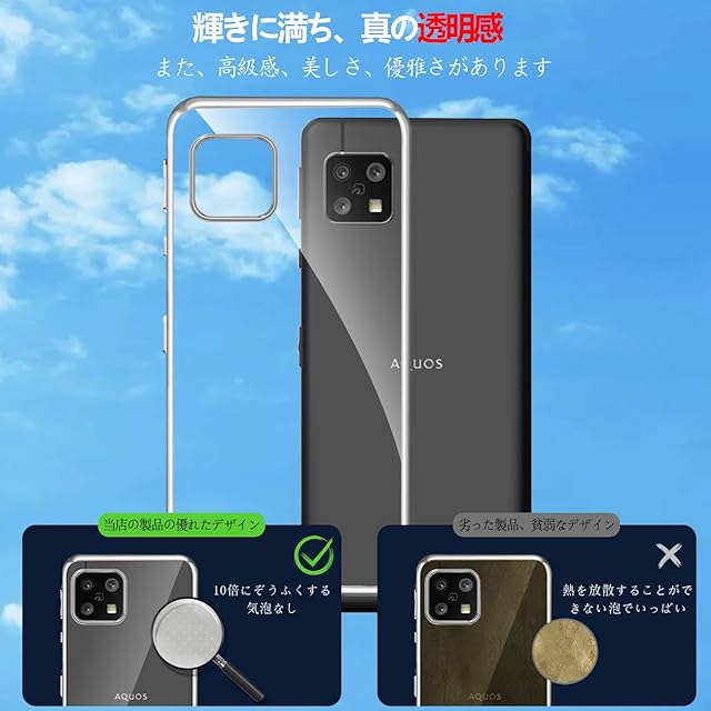 商品名:【FULEEYUHN】AQUOS Sense4 ケース / Sense5G ケース クリア 軽量 薄型 黄変防止 SH-41A SH-53A SH-M15 SHG03 対応 カバー 上質TPU素材 柔らかい手触[耐衝撃 レンズ保護 傷防止 落下防止 携帯便利]ストラップホール付き(シルバー)