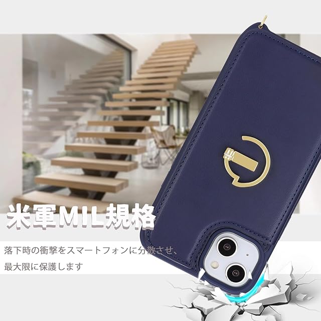 商品名:Havaya スマホショルダー iPhone15ケース iphone 15 ケース スマホケースiphone15 ショルダー リング付き レザー 肩掛け カード収納(アイフォン15 /あいふぉん15/いphone15/アイホン15 6.1インチ対応)-ブルー