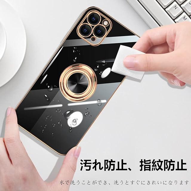 商品名:iPhone11 Pro Max ケース リング付き アイフォン11promax リング カバー 耐衝撃 TPU メッキ加工 360°回転 スタンド機能 車載ホルダー ストラップホール付き 6.5インチ(ブラック)