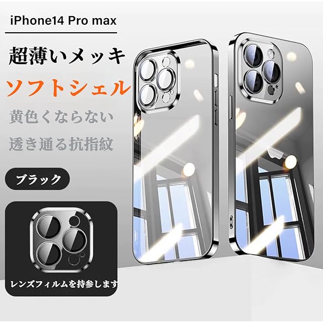 商品名:Tecxin iPhone14Promax用スクエアメッキケースiPhone 14promaxケース用ソフトクリアTPUバックカバー耐衝撃 (iPhone14 pro max ブラック)